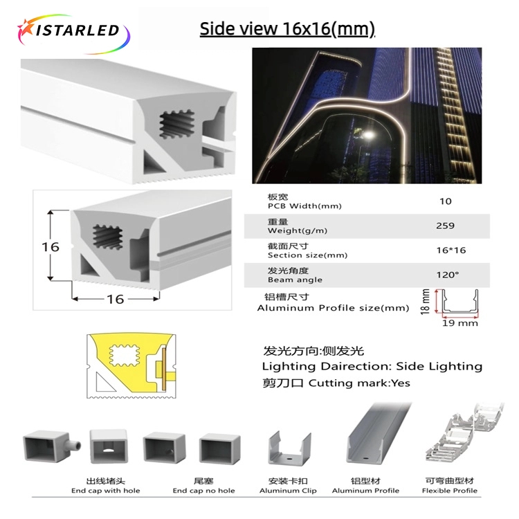 2.This neon tube light is 16*16mm,which is side view.