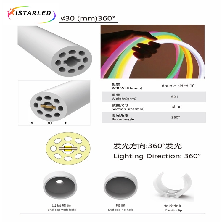7.3D 30mm Neon flexible tube light is inside with 2pcs 10mm pcb strips, so all the 10mm pcb strip can use in it,such as single color white strip,dual white strip,rgb, SPI/DMX pixel led strips.