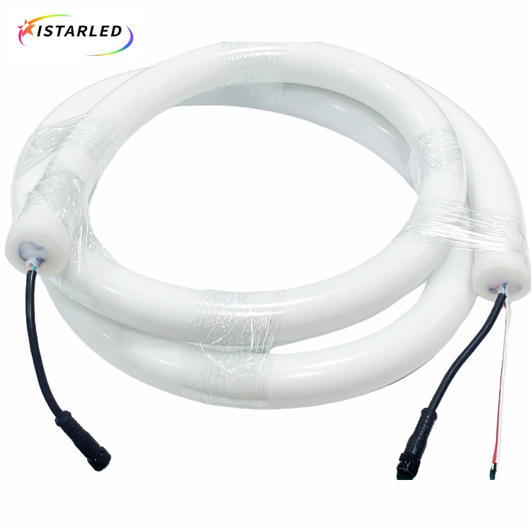 5.D40 3D 360degree rgb pixel neon strips is with M12 female and male conenctors.Also can do only input M12 connectors ,another side with closed end.