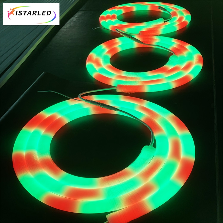 5.D25 3D 360degree rgb pixel neon strips is with M12 female and male conenctors.Also can do only input M12 connectors ,another side with closed end.