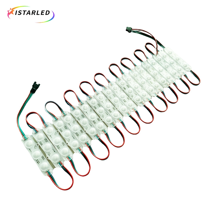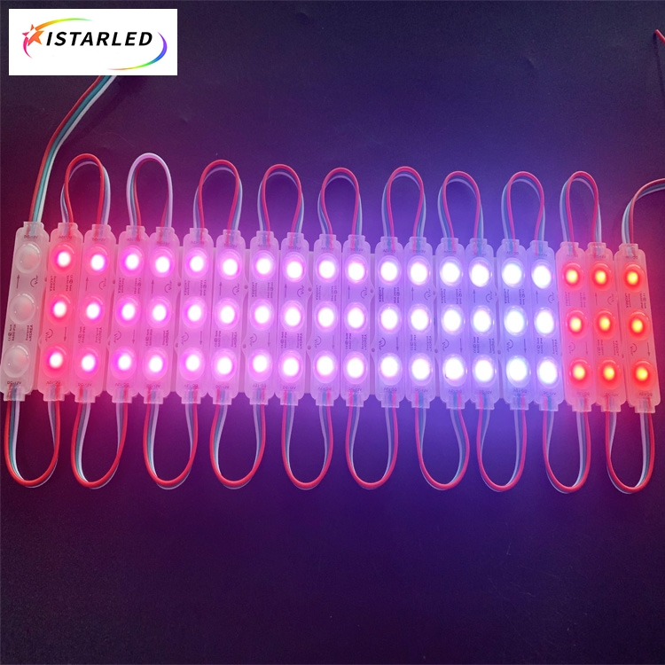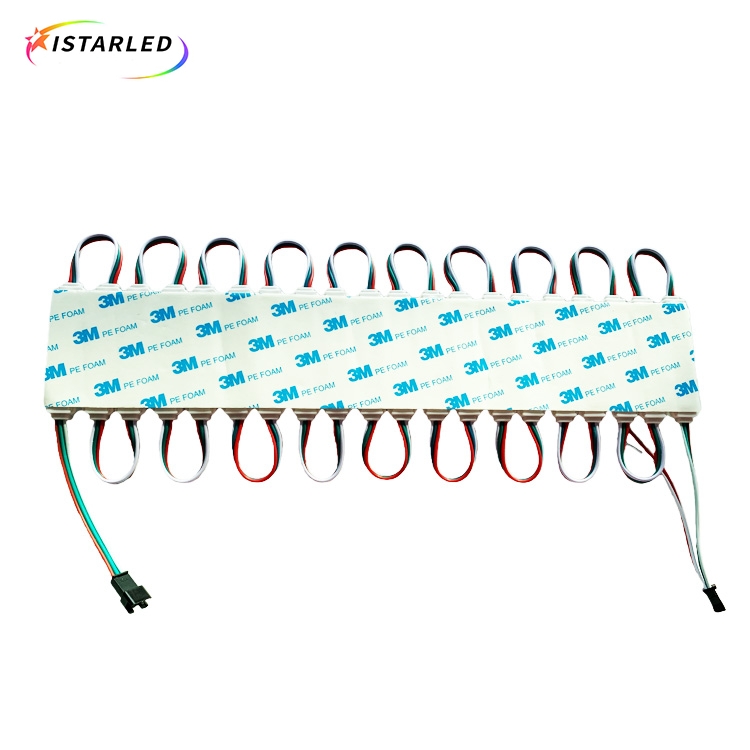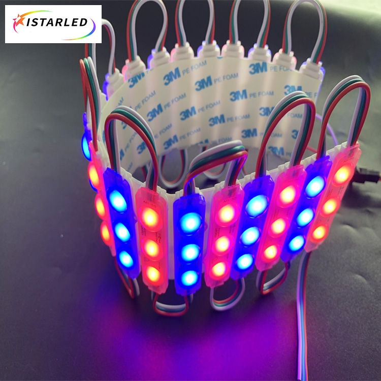 Digital rgb pixels are controlled lights you can program any effects or animate.Each digital pixel with rectangle PVC plastic and contains 3 RGB SMD5050 LEDs and a WS2811 chip soldered to the PCB.The rectangle pixel module is ultrasound surface to waterproof IP65.Those pixel module also have nice mounting options, for examples, each chain with 3M adhesive tape on the backside to help installing,you can put the pixel module into signs, so those pixel modules are typically used to make indoor and outdoor signs.Also each pixel module have a small hole for installation. They also can make large RGB pixel displays and dance stages,KTV floors.