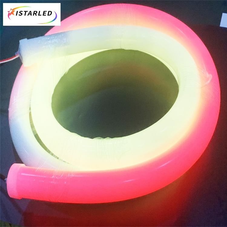 1. Dimeter 40mm neon pixel led strips is 360degree veiw angle,inside with 2pcs 24V WS2811/UCS1903 60leds 20Pixels rgb led strip, SPI IC chip per meter. Drived by dc12v, 28w/m.