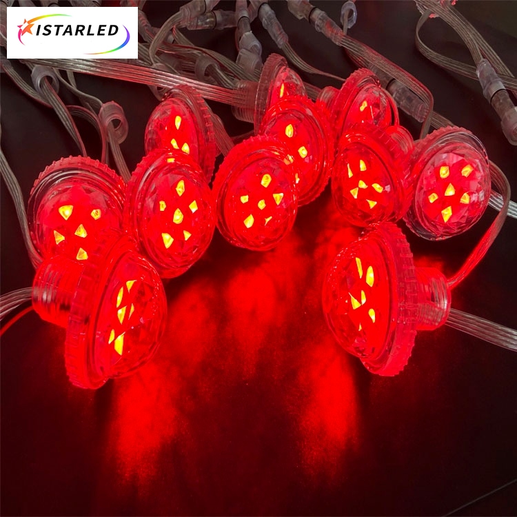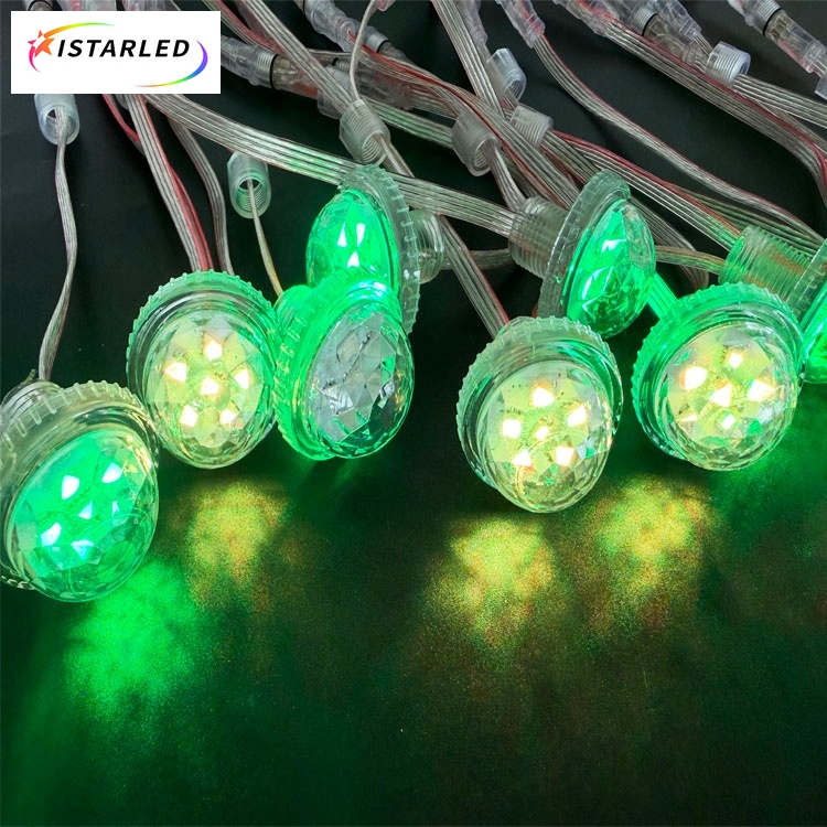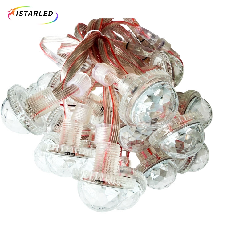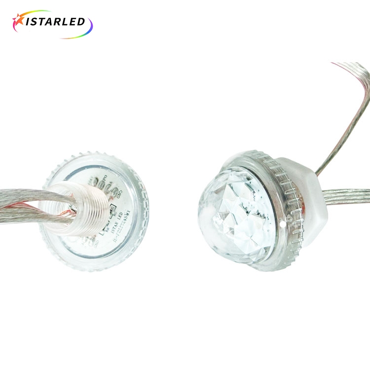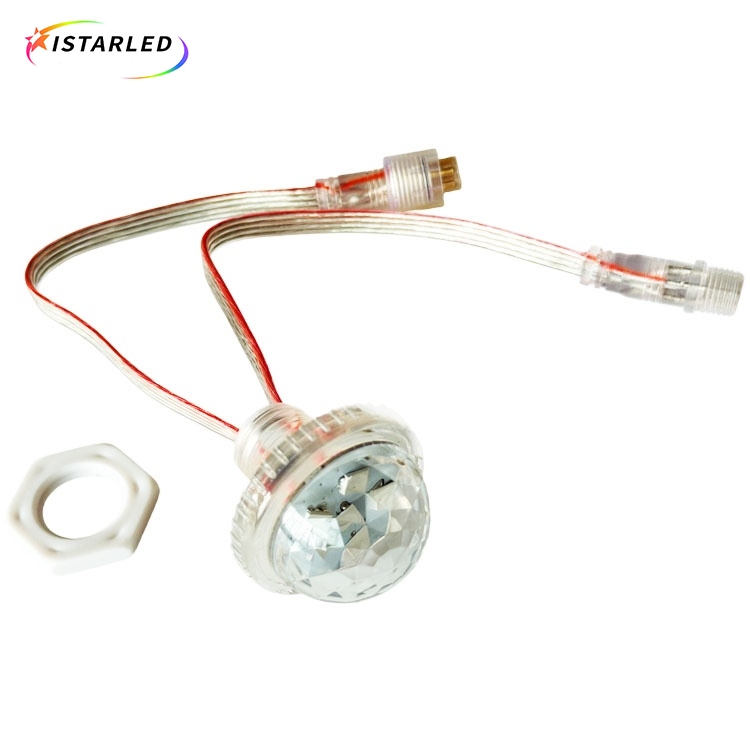 This 35mm rgb 6pixels led is made by 6pcs smd5050 rgb led with one pcs ucs512 ic chip,drived by 24v, for the backside install hole we can do 35mm hole,19mm hole and 14mm hole. The glue inside from backside, so leds are fully waterproof.Normal it is with 4Pin JST SM female and male connectors with 8cm for each pixels,so you can plug them together as the quantity you need, just remember to recharge power every 20pcs. Also we can provide 20pcs with one pcs have extra power cable. And if you want to use them in outside, please tell us before order, then we can do them with waterproof plugs.